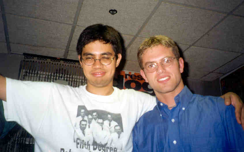 The one with the beer, Rupak. The dazed and bewildered looking one is the Bish aka Joshua Ethan Bishoff.